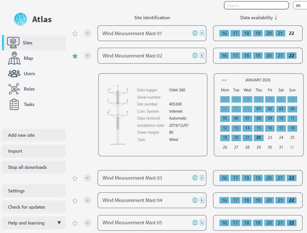We have great news! We are excited to announce the release of our new software for managing data loggers used in both wind and solar measurement campaigns. With Atlas 3.0, our customers can benefit from a significantly faster and more responsive user experience, designed to make day-to-day operations smoother and more intuitive. The software introduces